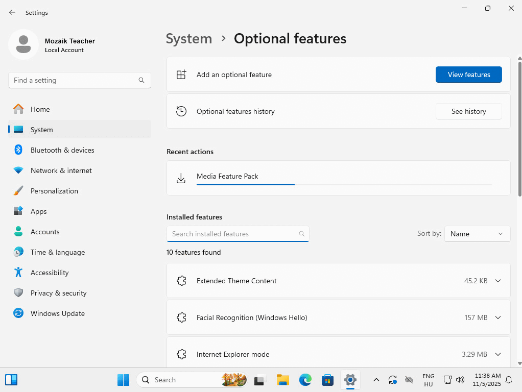 If you use one of the N versions of Windows 11, that is, a version that lacks built-in media and communication technologies, then the mozaBook software will not launch. When launching mozaBook, the following message will appear: