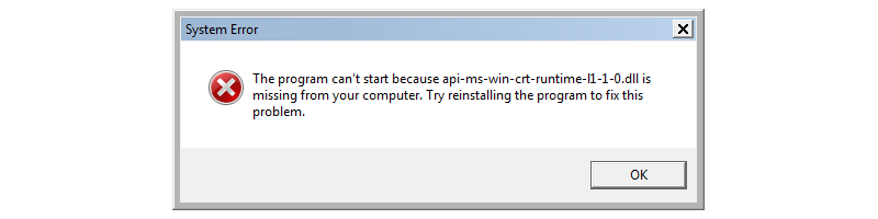 Αν μετά την εγκατάσταση ή ενημέρωση του mozaBook, και κατά την εκκίνηση του προγράμματος, εμφανίζεται μήνυμα σφάλματος που αναφέρει την έλλειψη του αρχείου api-ms-win-crt-runtime-l1-1-0.dll , το πρόβλημα μπορεί να επιλυθεί ως ακολούθως: