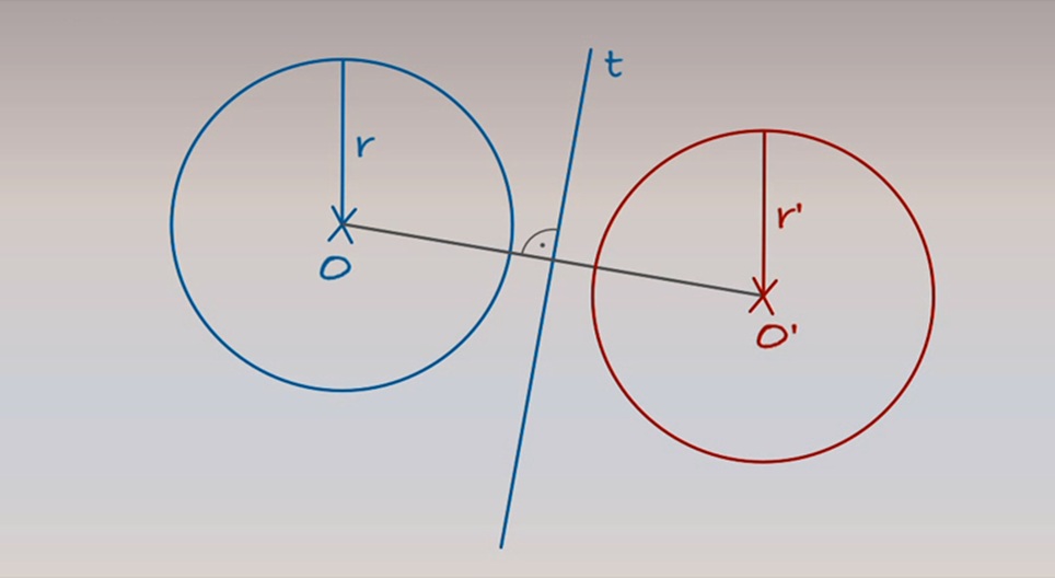 Σε ένα δεδομένο επίπεδο, απεικονίζονται μια ευθεία t και ένας κύκλος με κέντρο O και ακτίνα r. Θα σχεδιάσουμε το συμμετρικό του κύκλου ως προς την ευθεία.