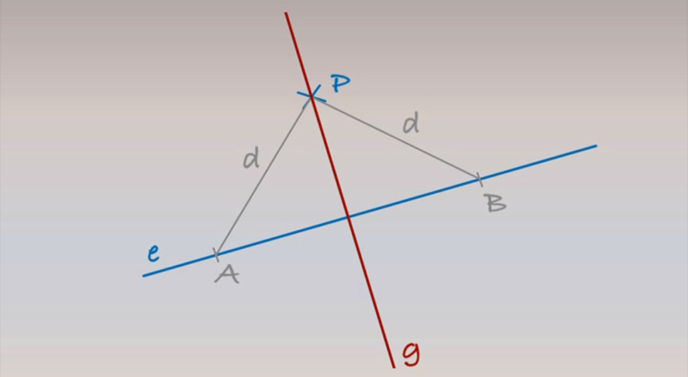Με δεδομένη μια ευθεία e και ένα σημείο Ρ εκτός της ευθείας, χαράζουμε μια νέα ευθεία g, που διέρχεται από το σημείο Ρ και είναι κάθετη στην ευθεία e.